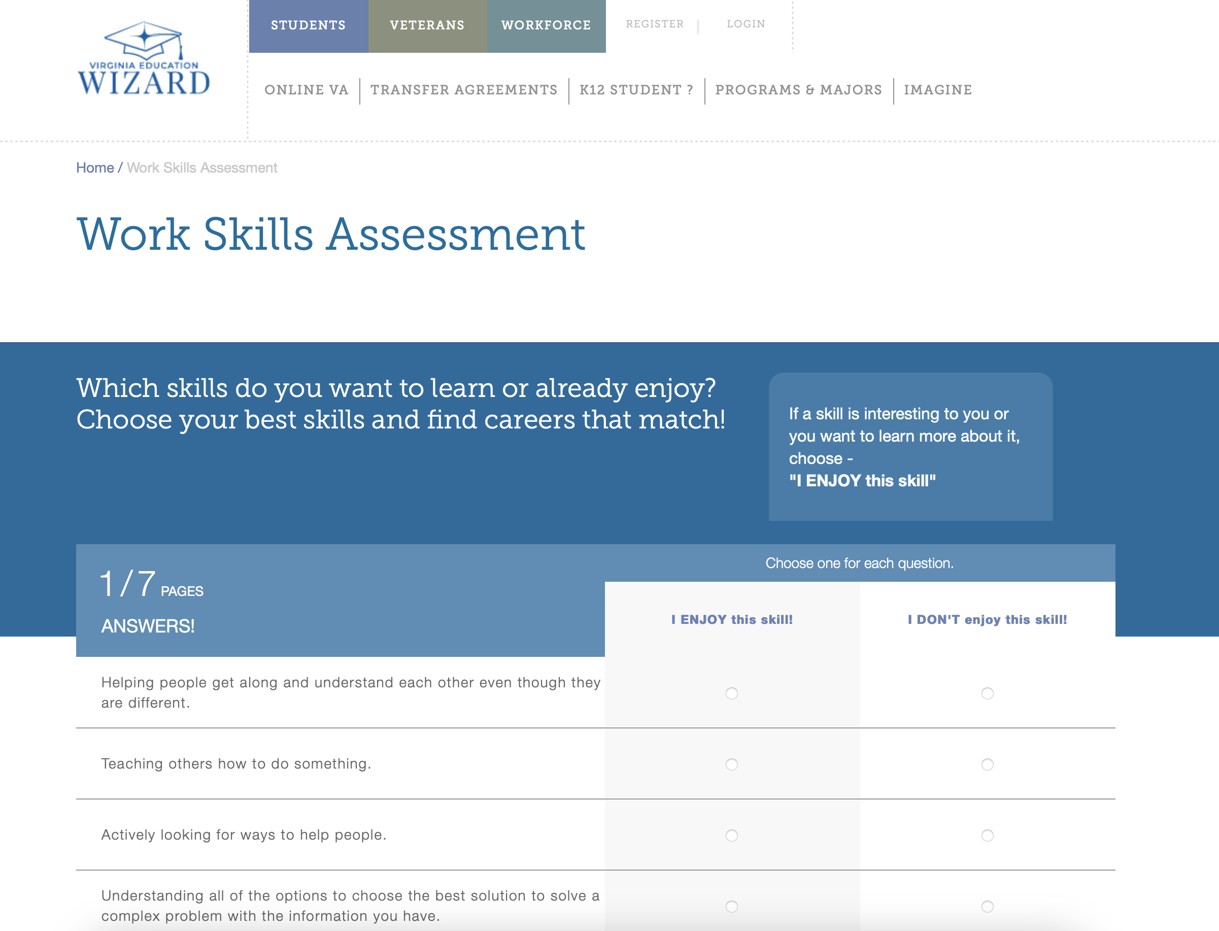 Take the free Skill Assessment test at https://www.vawizard.org/wizard/skill-assess.